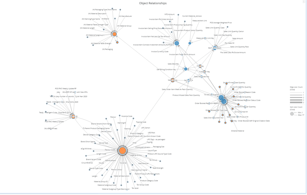 Again, this is a tiny portion of an Enterprise Semantic Graph. For those who know MicroStrategy, the term Schema is often used as a substitute. But that’s a simplification. Limiting the ESG to a collection of tables, attributes, metrics, facts, filters, reports, dossiers only gives you part of the story. I affirm this because I have spent quite a bit of time trying to visualise the ESG in a way that is easy to comprehend and to navigate. And the more I tried, the more I realised the following: